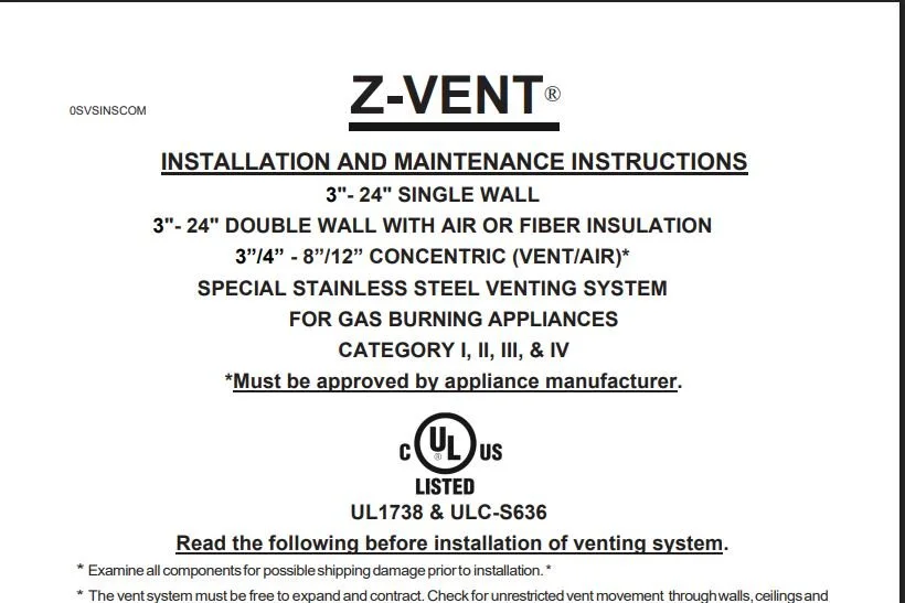 Centrotherm InnoFlue Installation Instructions- Single Wall Rigid, Flex and Concentric Vent Systems: